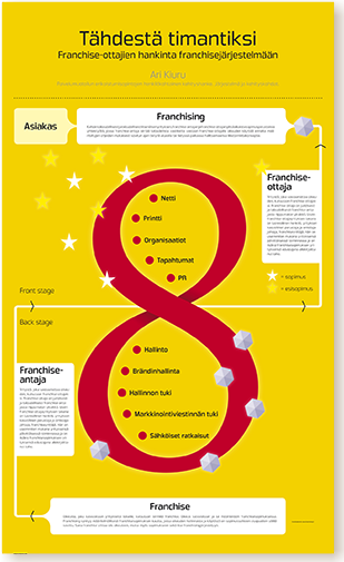 Työskentelen yrittäjämäisesti asiakkaan kanssa läheisessä yhteistyössä tai osana asiakasorganisaatiota monipuolisissa brändinkehittämisen, palvelumuotoilun, viestinnän, mainonnan, myynnin ja koulutuksen tehtävissä eri toimialojen kanssa. Ajantasainen koulutus, suunnittelun ja tuotannon työkokemus sekä henkilökohtaiset ominaisuuteni antavat edellytykset työn erittäin hyvään ja laaja-alaiseen hoitamiseen.